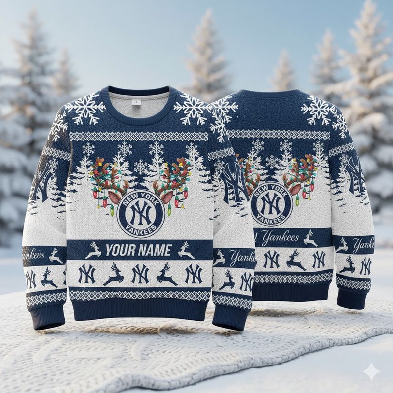 Stocktee New York Yankees Limited Edition Custom Name Ugly Sweater Lind NEW156151
